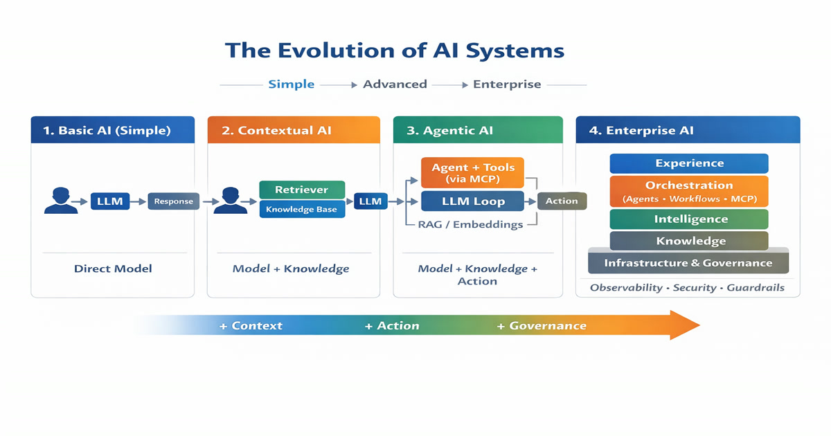A structured guide explaining how AI systems evolve from simple model usage to governed platforms, and how to scale complexity without losing architectural control.