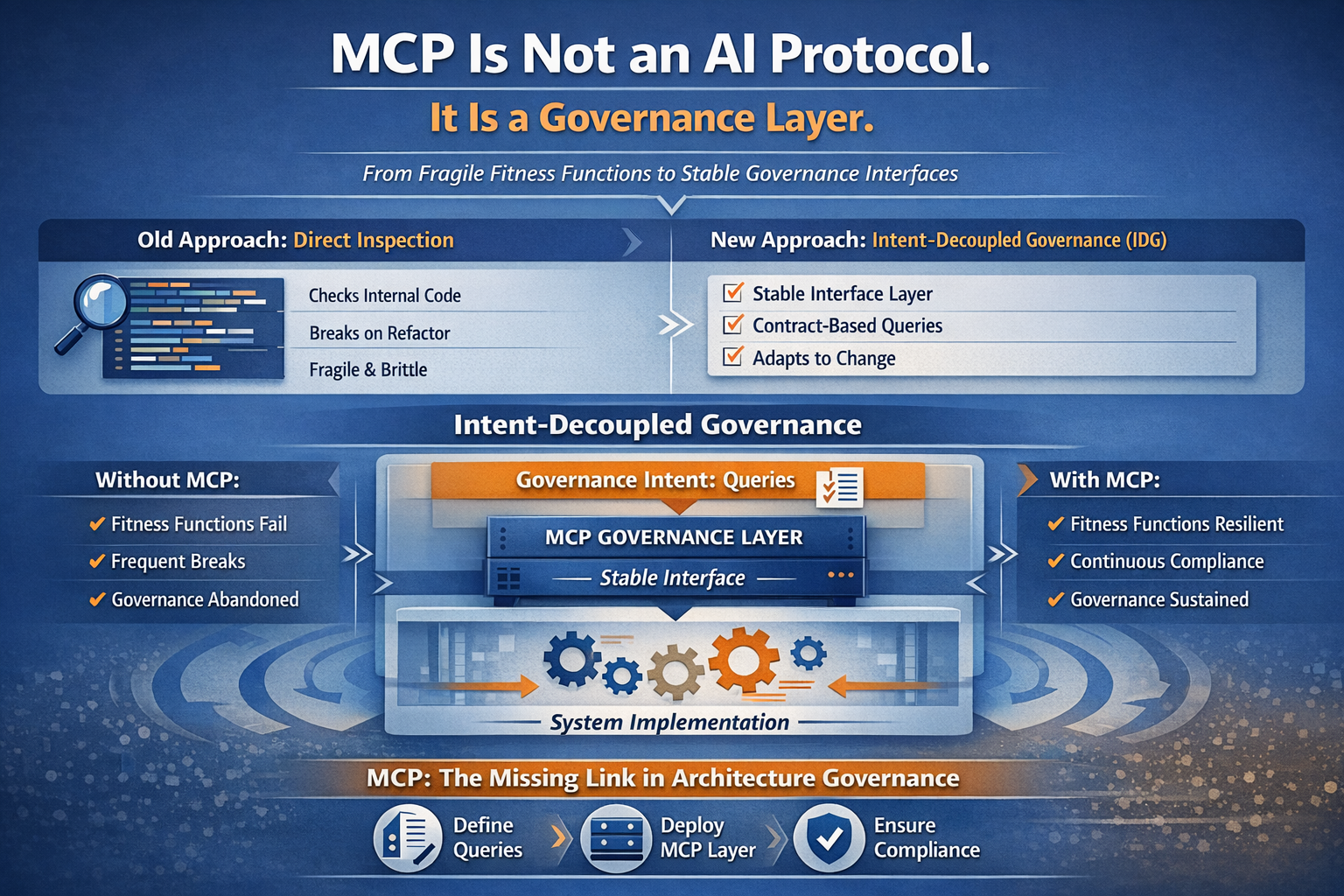 MCP is classified as an AI integration protocol. It is actually a governance primitive — the stable interface layer that architecture fitness functions have been missing for years.